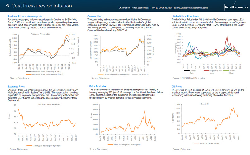 Costs backdrop: Input cost pressures remain firm. Producer input prices rose xx% year-on-year in October, while output prices climbed xx%, suggesting manufacturers are still passing higher costs through supply chains. Commodity benchmarks remain elevated, and shipping rates continue to climb, keeping import and distribution costs tight. Oil prices have eased but remain too high to offer meaningful relief to transport-heavy categories. Together, these factors continue to weigh on inflation.