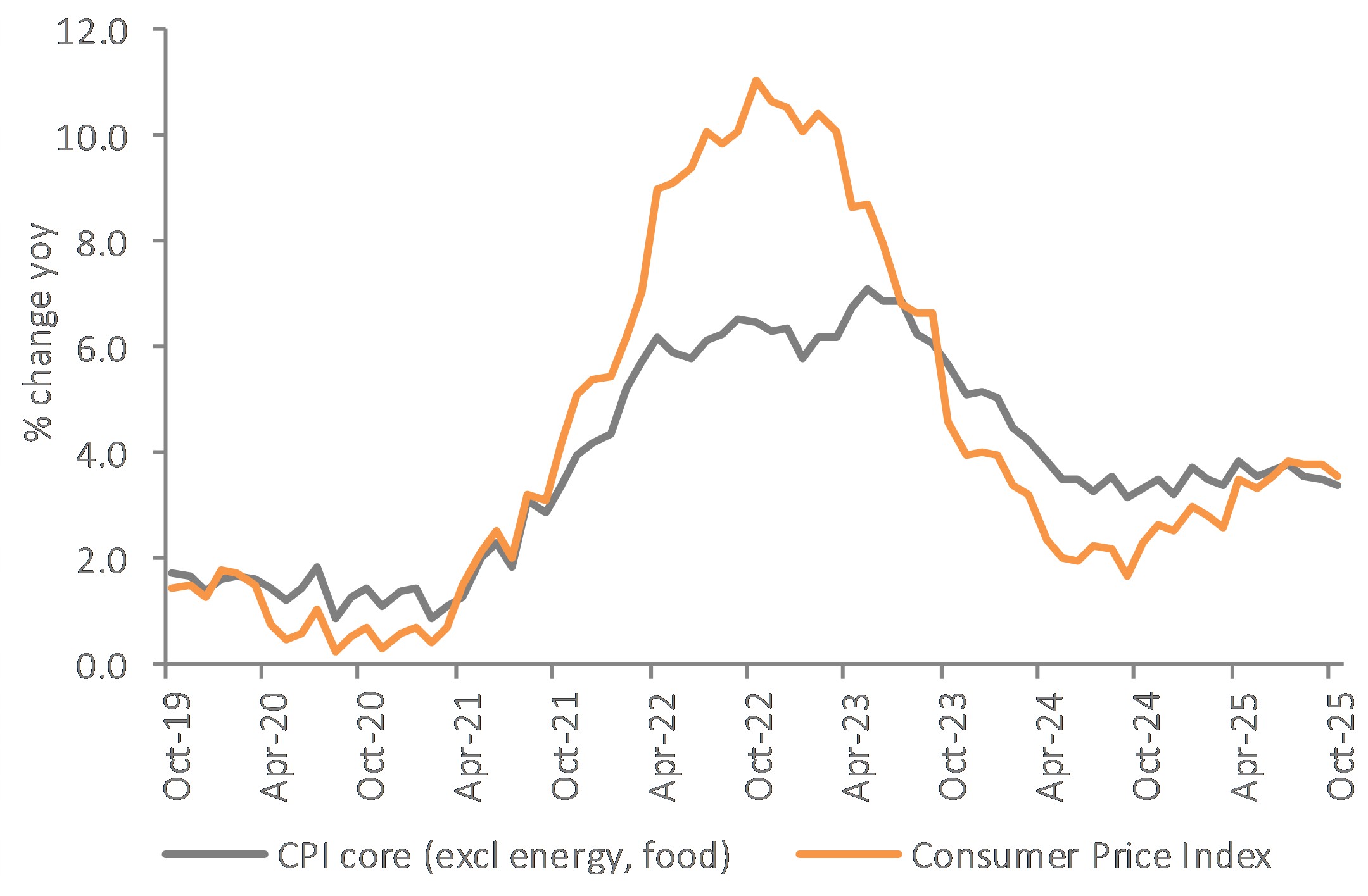 Inflation outlook: October’s data shows a clearer turn in momentum. Housing and energy costs are easing at a faster pace, taking some of the heat out of the index after a long stretch of strain. Food inflation moved higher again this month, yet producer trends point to this rise being close to its limit.