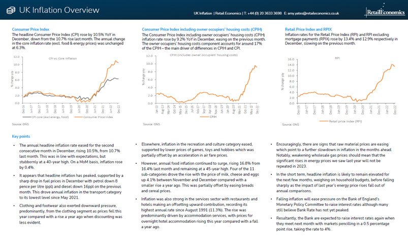 Food inflation delivered the clearest surprise, with the annual rate falling back to xx% following October's rebound. Bread, cereals, dairy and confectionery all moved lower, supported by heavier discounting late in the period.