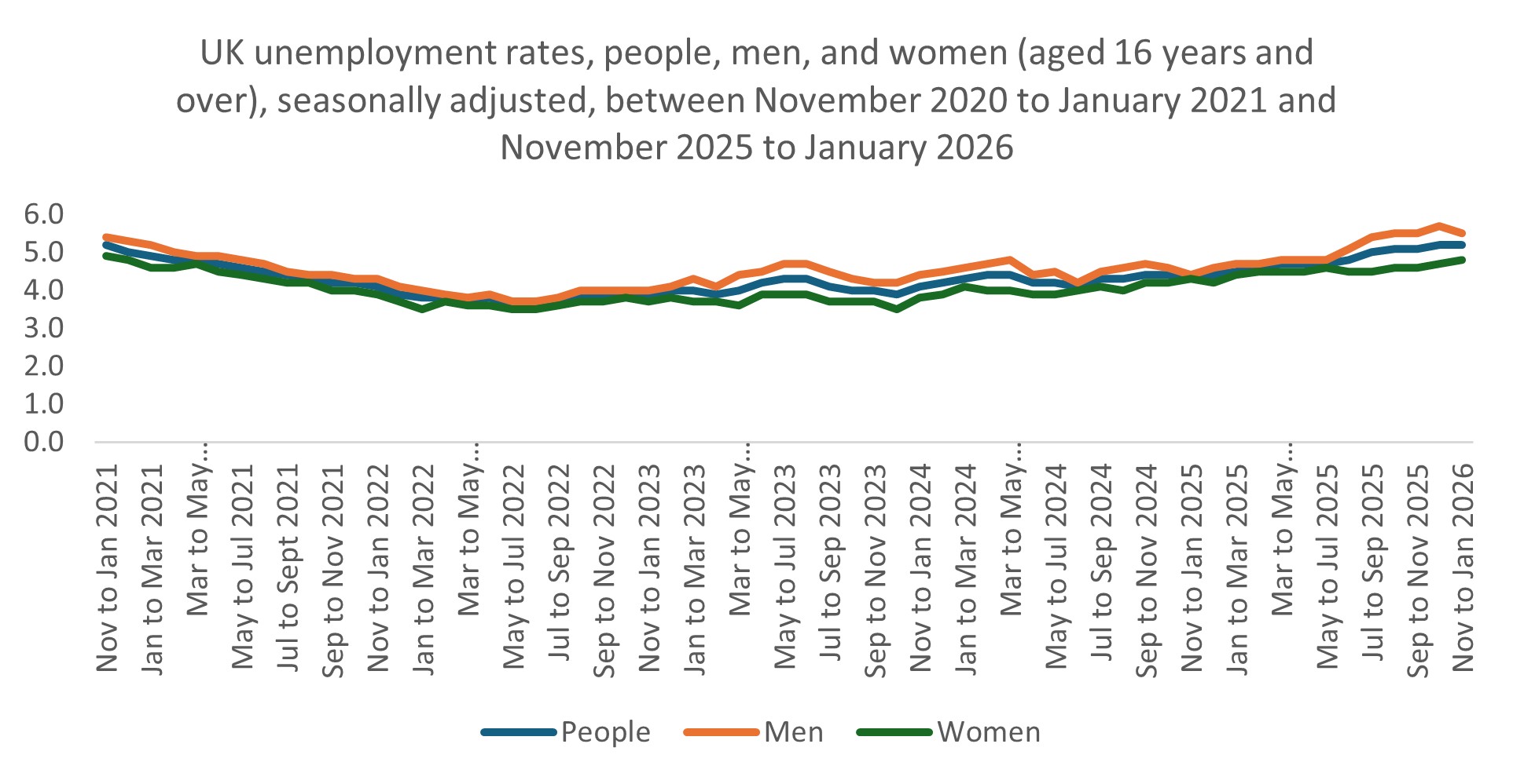 - The employment rate (aged 16–64) was 75.1% in November 2025 to January 2026, up on the quarter and above a year earlier.