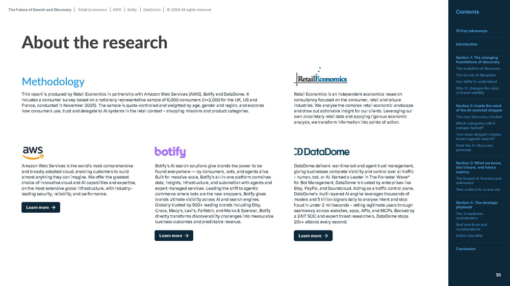 To understand what this means, our research combines a review of technological change with new consumer evidence. We surveyed 6,000 nationally representative consumers across the UK, US and France, and mined key insights to help retail leaders navigate the transition to agentic search and discovery.