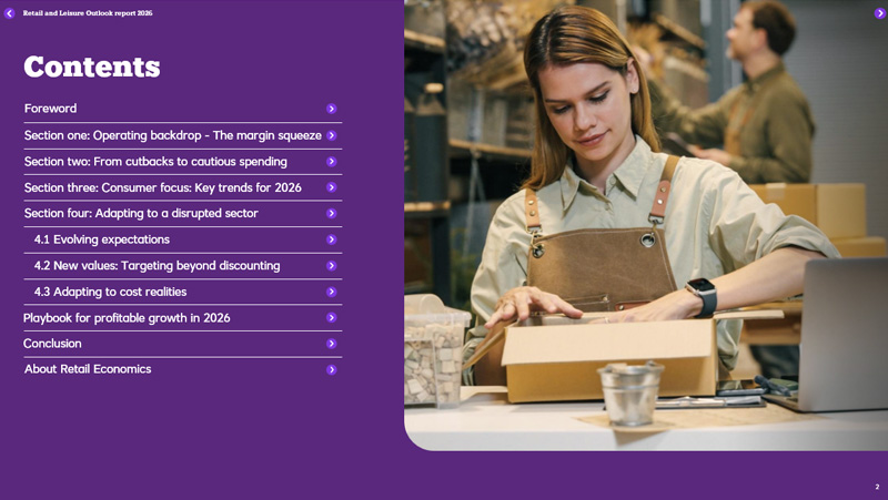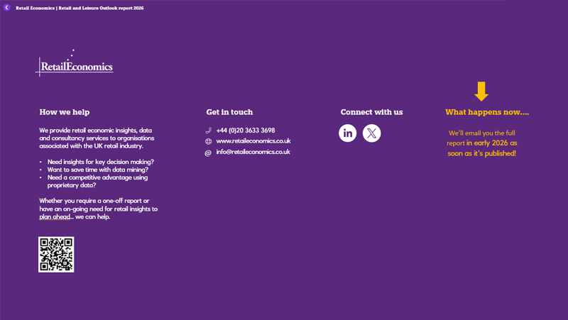 This preview introduces the UK retail and leisure outlook 2026, an upcoming flagship report from Retail Economics examining the forces set to shape the sector in the year ahead. It outlines the key themes, pressures and strategic questions that retailers and leisure operators will need to navigate as economic conditions, consumer behaviour and operating models continue to evolve.