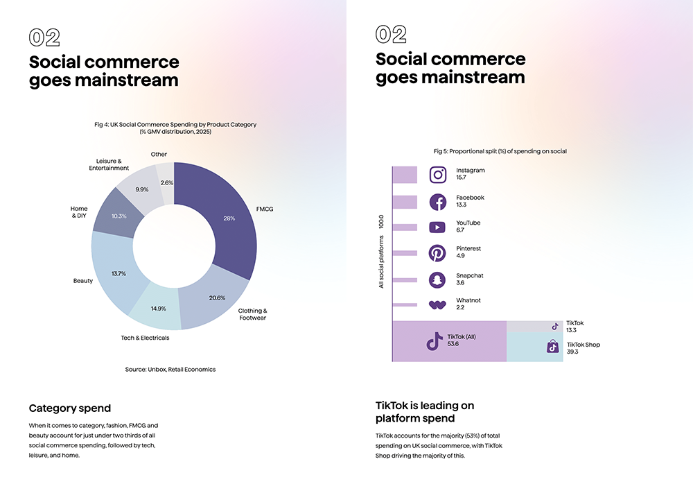 • While Instagram remains the largest social commerce platform by spend, TikTok is the fastest-growing, reshaping impulse behaviour through entertainment-led formats.