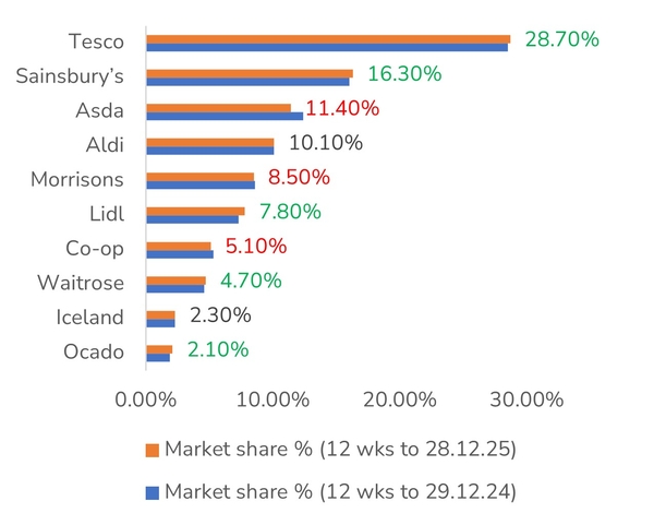 UK Grocery Market Share (12 weeks to 28 December)